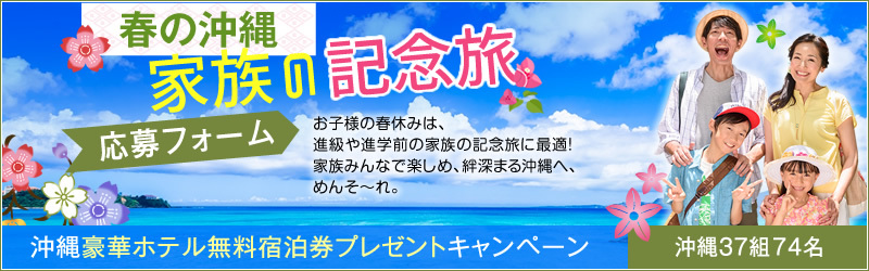 沖縄の豪華ホテル無料宿泊券を抽選で37組74名様にプレゼントいたします。